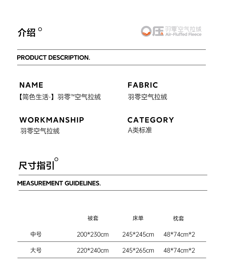 【双感】羽零空气拉绒四件套