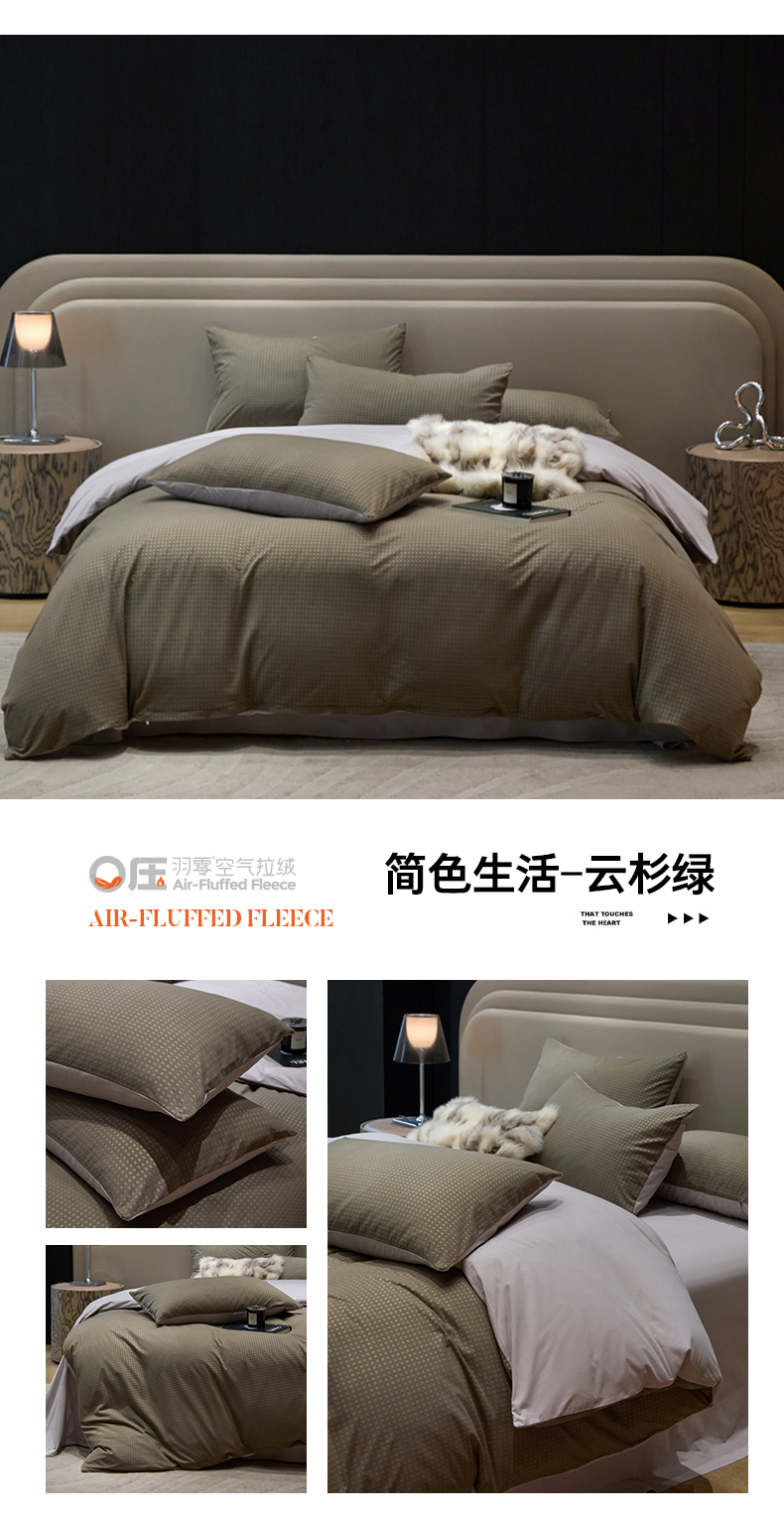金奇达家纺 2025新款【简色生活】热压纹-羽零™空气拉绒四件套(会员减20元)标准号全网控价(折后券后)不低于159元 简色生活-云杉绿