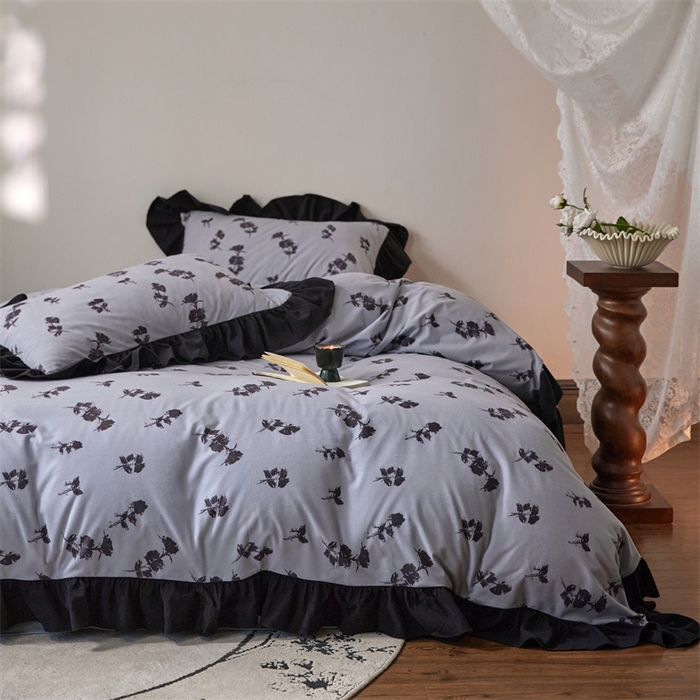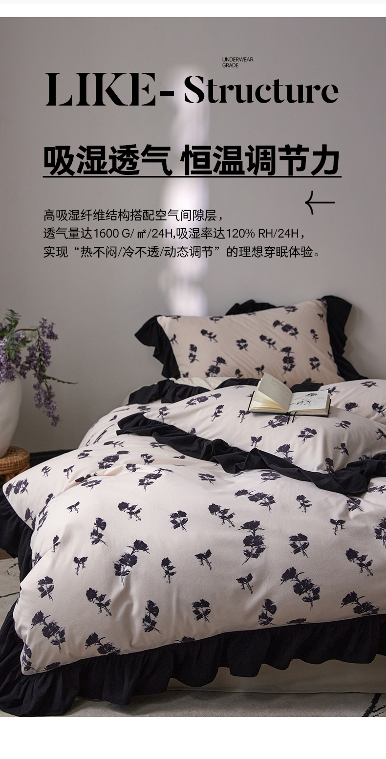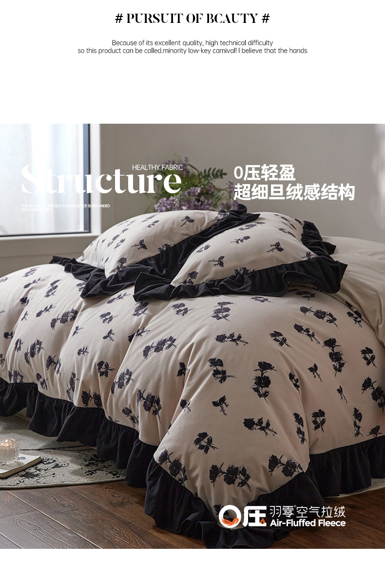 (总)金奇达家纺 2025新款A类保暖羽零™空气拉绒四件套热肤膜【墨花绮】(会员减40元)标准号全网控价(折后券后)不低于199元