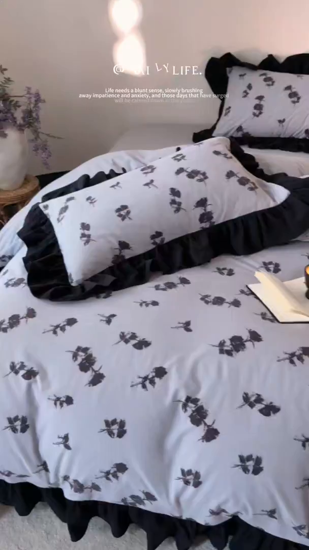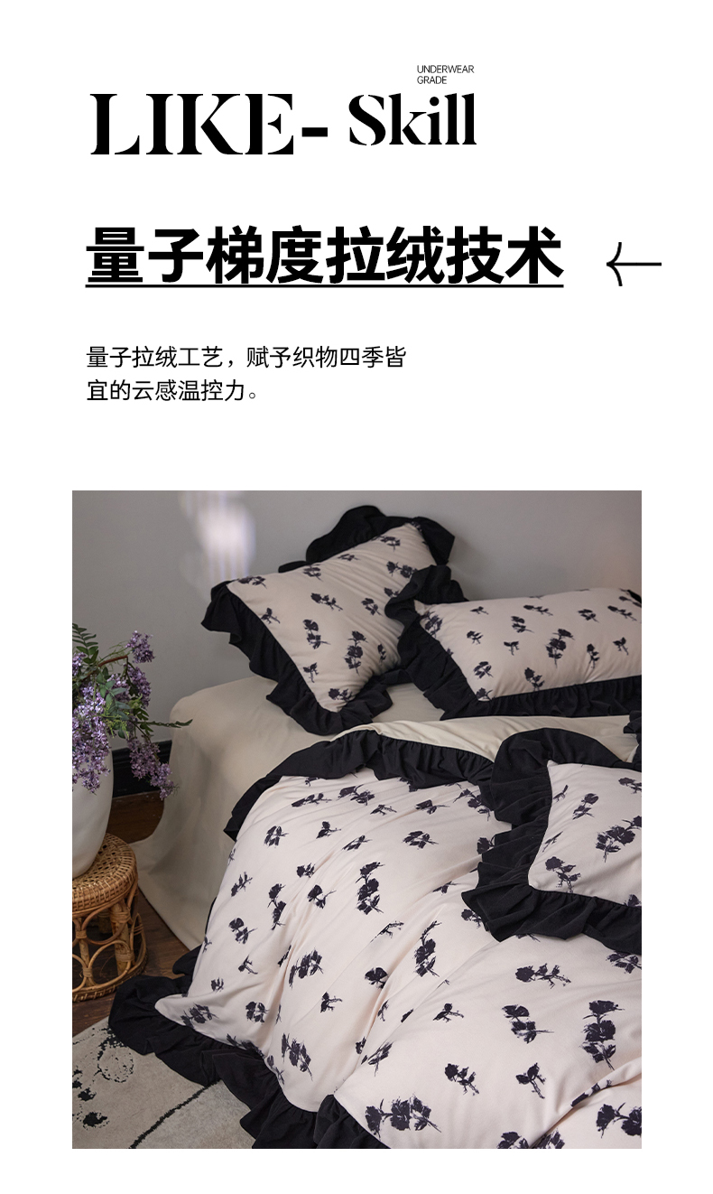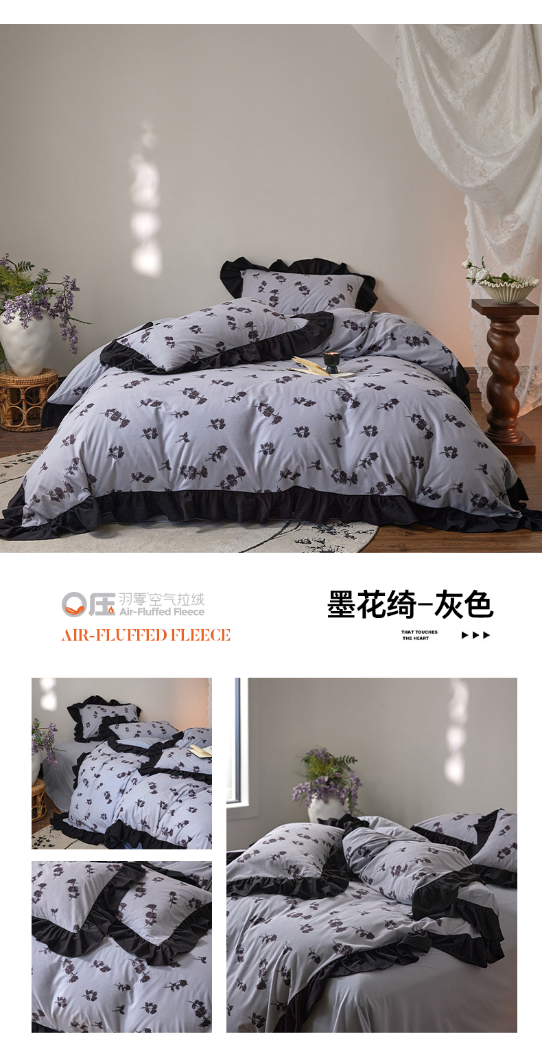 > (总)金奇达家纺 2025新款A类保暖羽零™空气拉绒四件套热肤膜【墨花绮】(会员减40元)标准号全网控价(折后券后)不低于199元