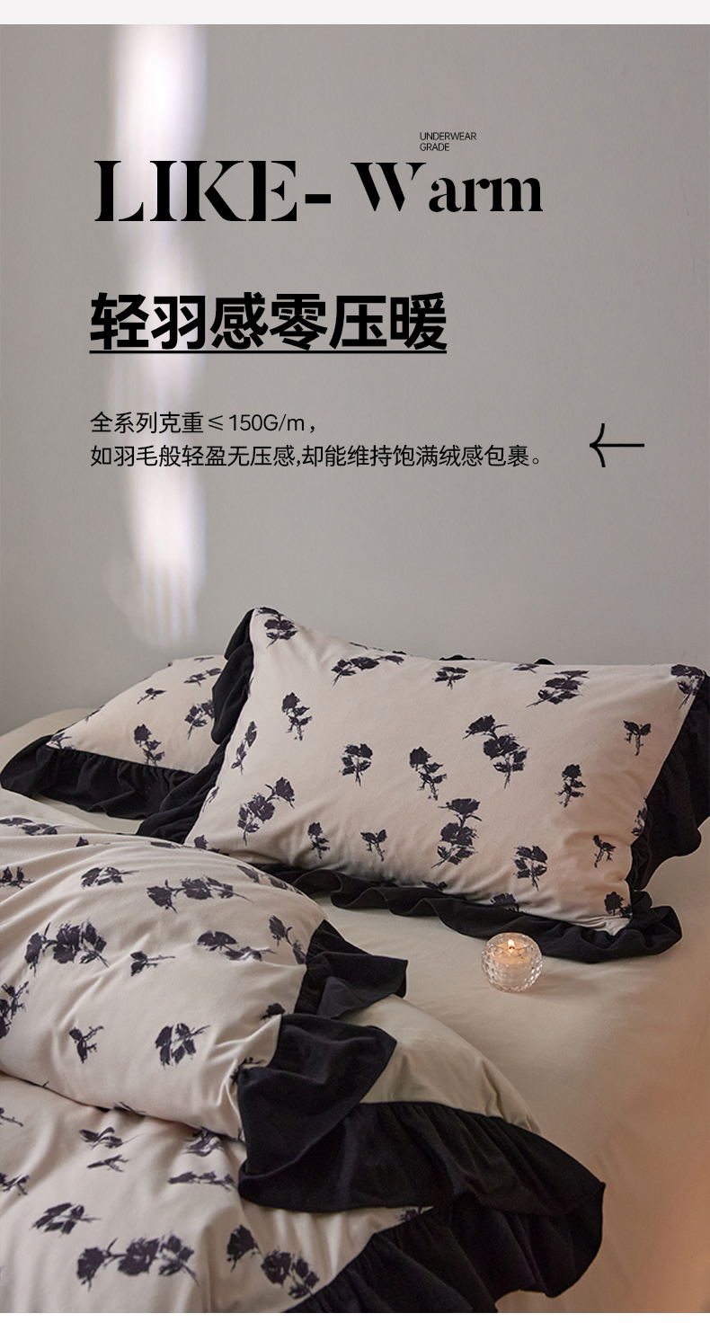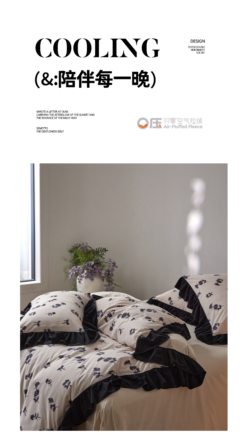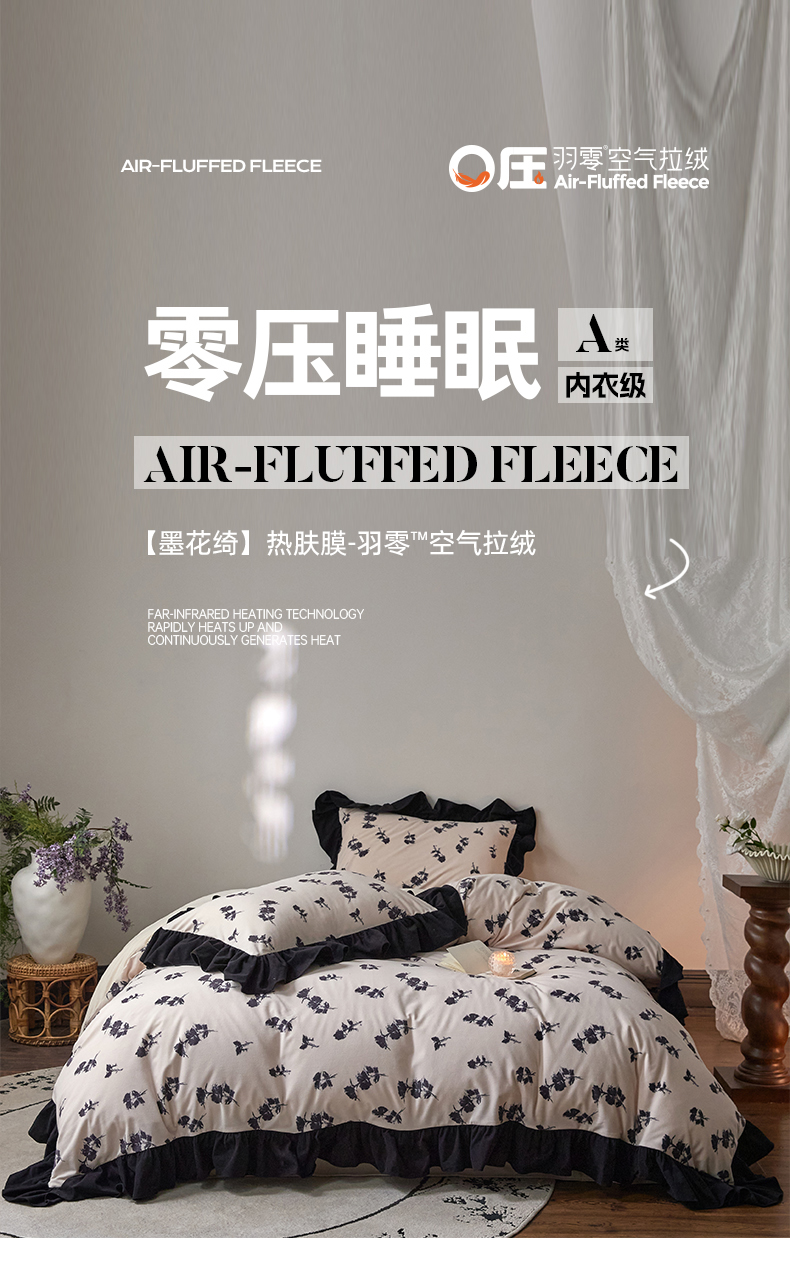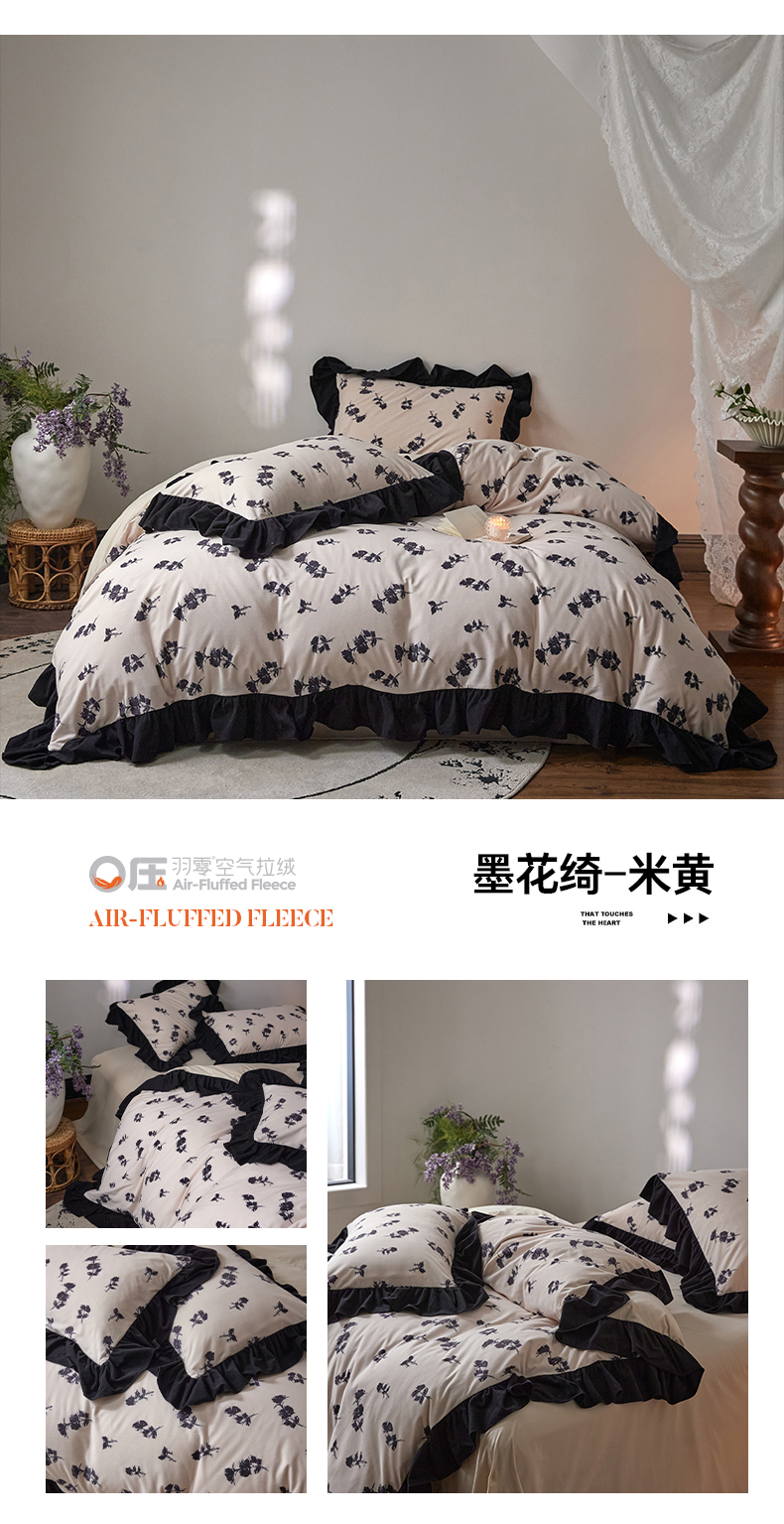 金奇达家纺 2025新款A类保暖羽零™空气拉绒四件套热肤膜【墨花绮】(会员减40元)标准号全网控价(折后券后)不低于199元 墨花绮-米黄