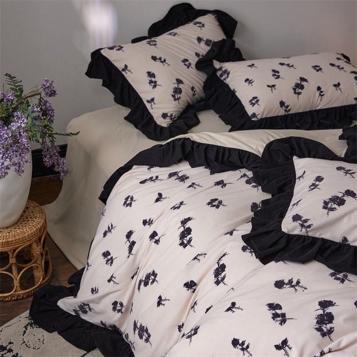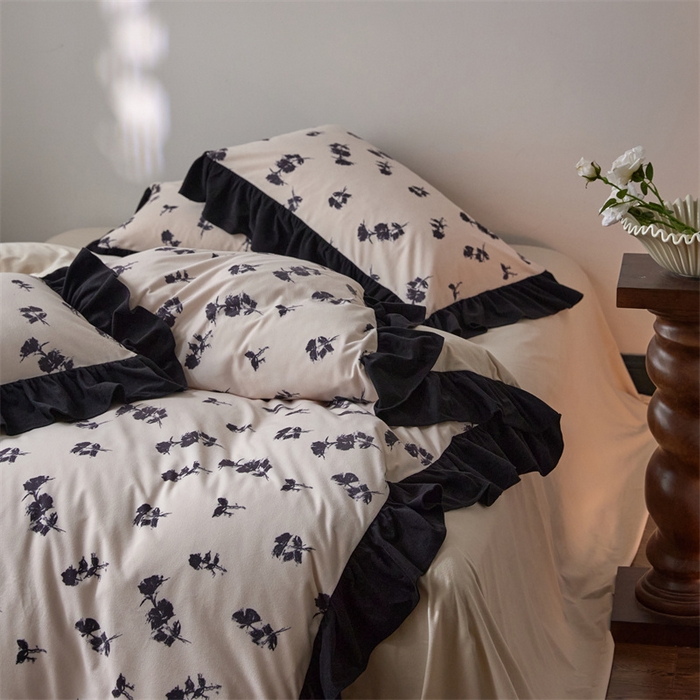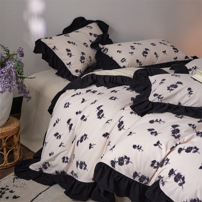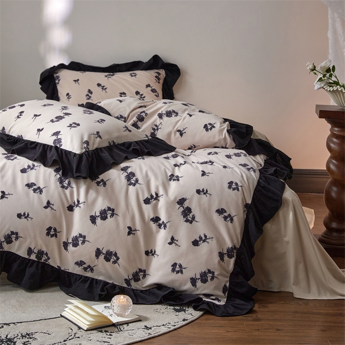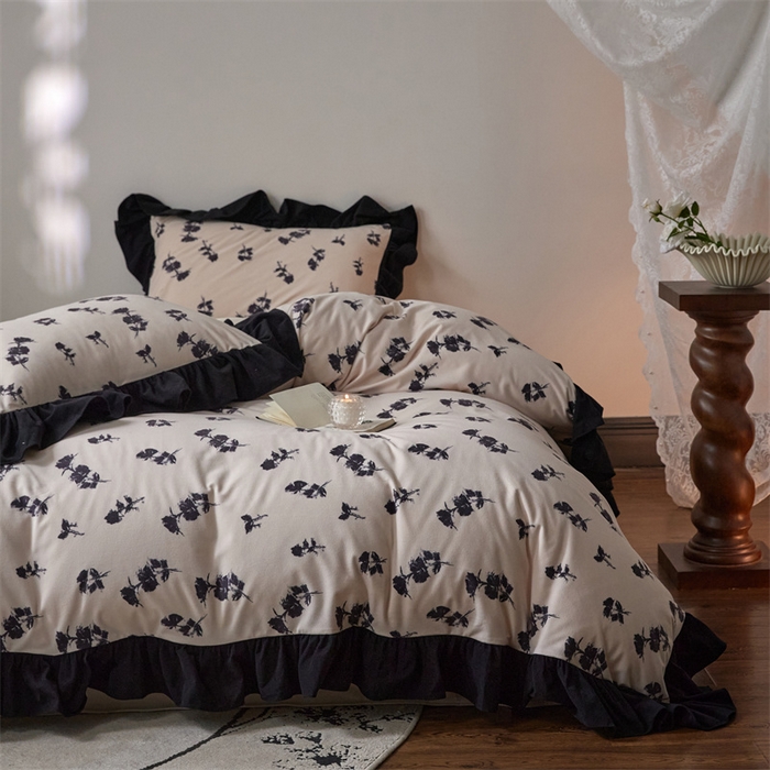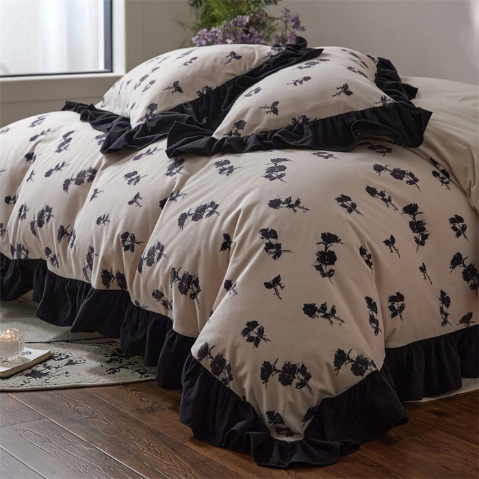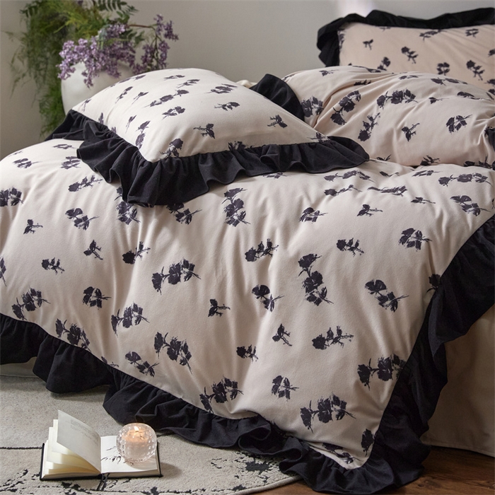 金奇达家纺 2025新款A类保暖羽零™空气拉绒四件套热肤膜【墨花绮】(会员减40元)标准号全网控价(折后券后)不低于199元 墨花绮-米黄
