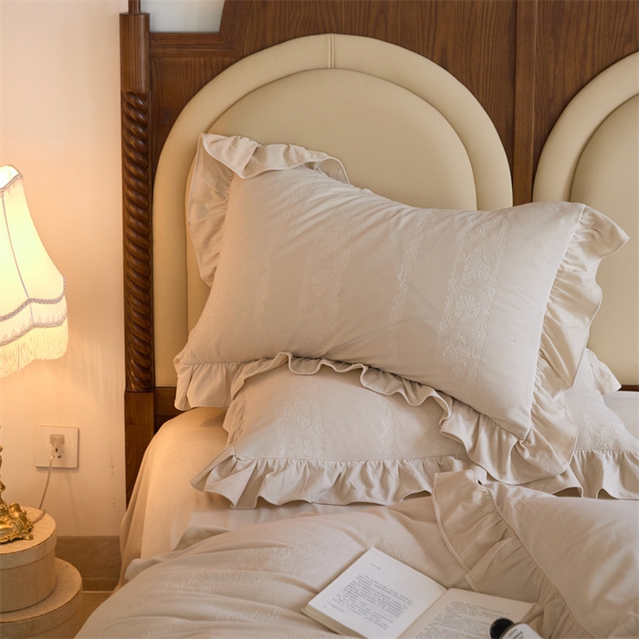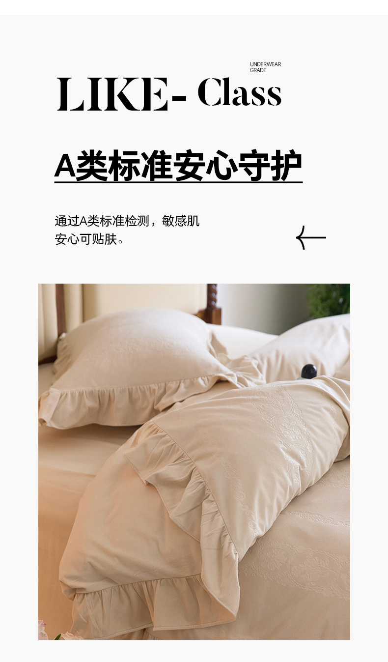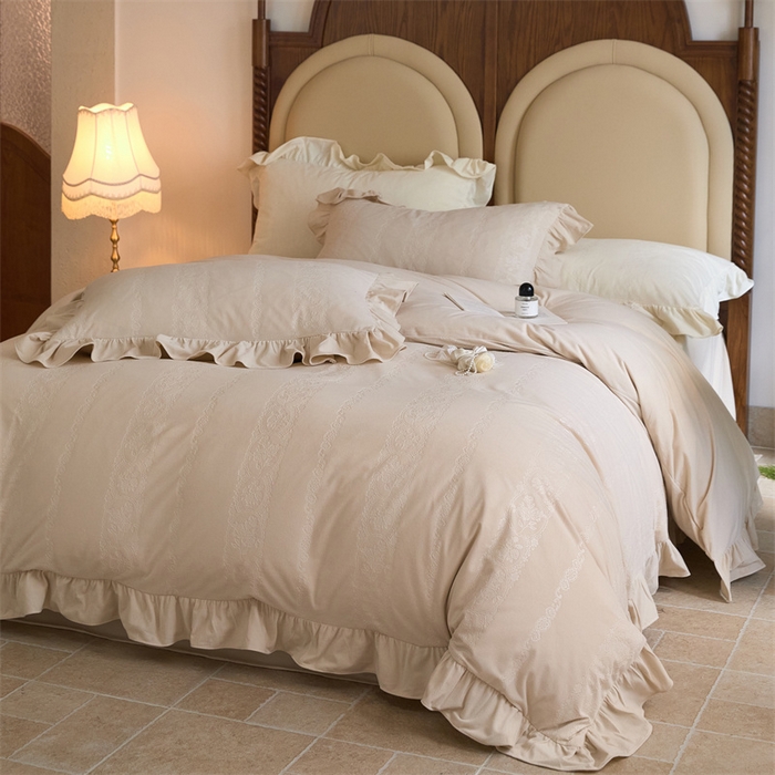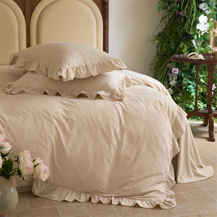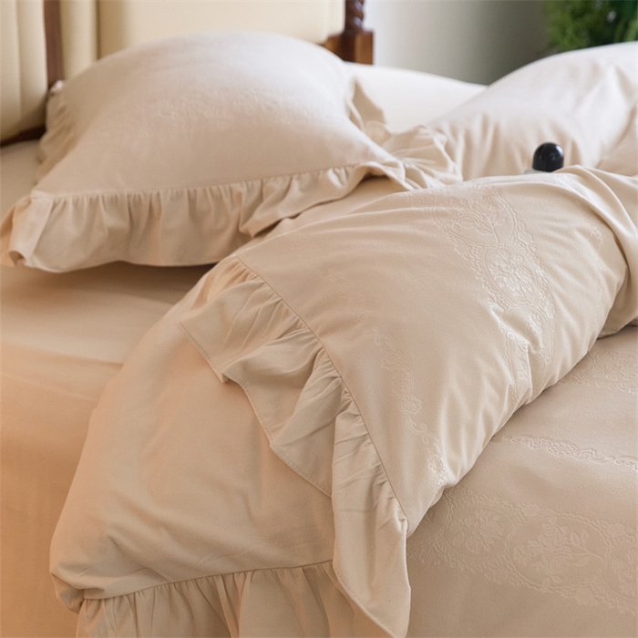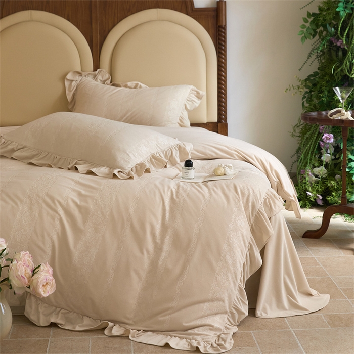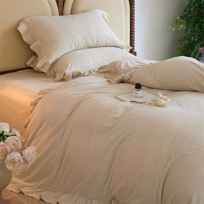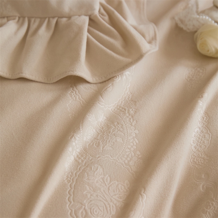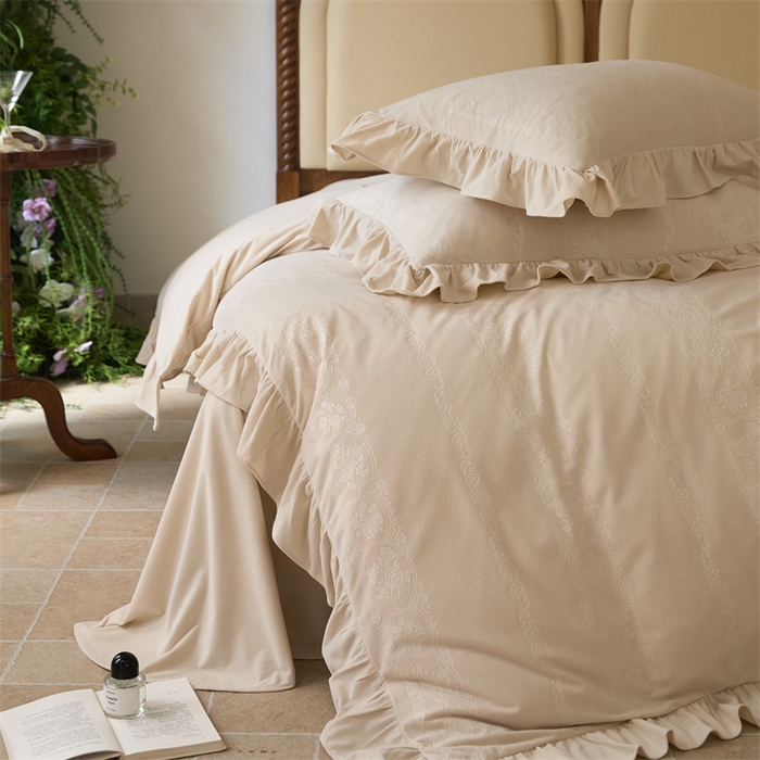 > 金奇达家纺 2025保暖新款羽零™空气拉绒加厚荷叶边四件套热压纹【香榭丽织梦】 (会员减45元)全网控价标准号(折后券后)不低于199元 香榭丽织梦-杏色