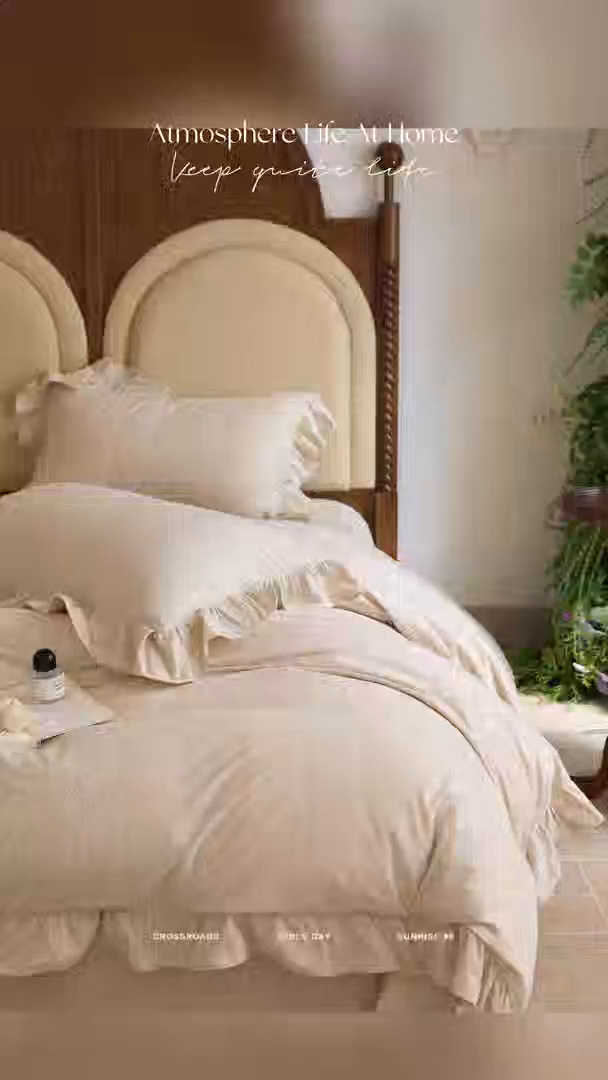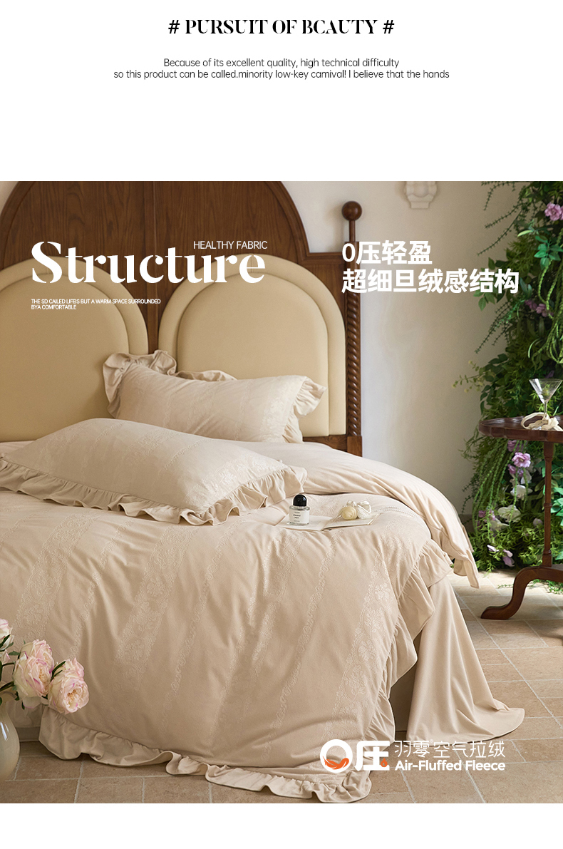 金奇达家纺 2025保暖新款羽零™空气拉绒加厚荷叶边四件套热压纹【香榭丽织梦】 (会员减45元)全网控价标准号(折后券后)不低于199元 香榭丽织梦-杏色