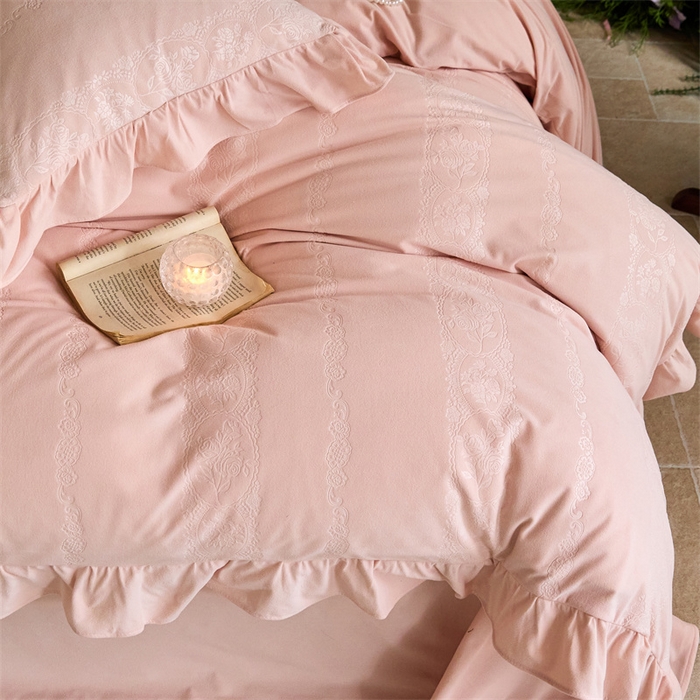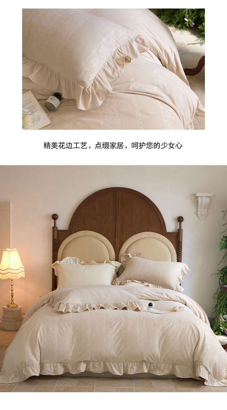 > 金奇达家纺 2025保暖新款羽零™空气拉绒加厚荷叶边四件套热压纹【香榭丽织梦】 (会员减45元)全网控价标准号(折后券后)不低于199元 香榭丽织梦-温玉