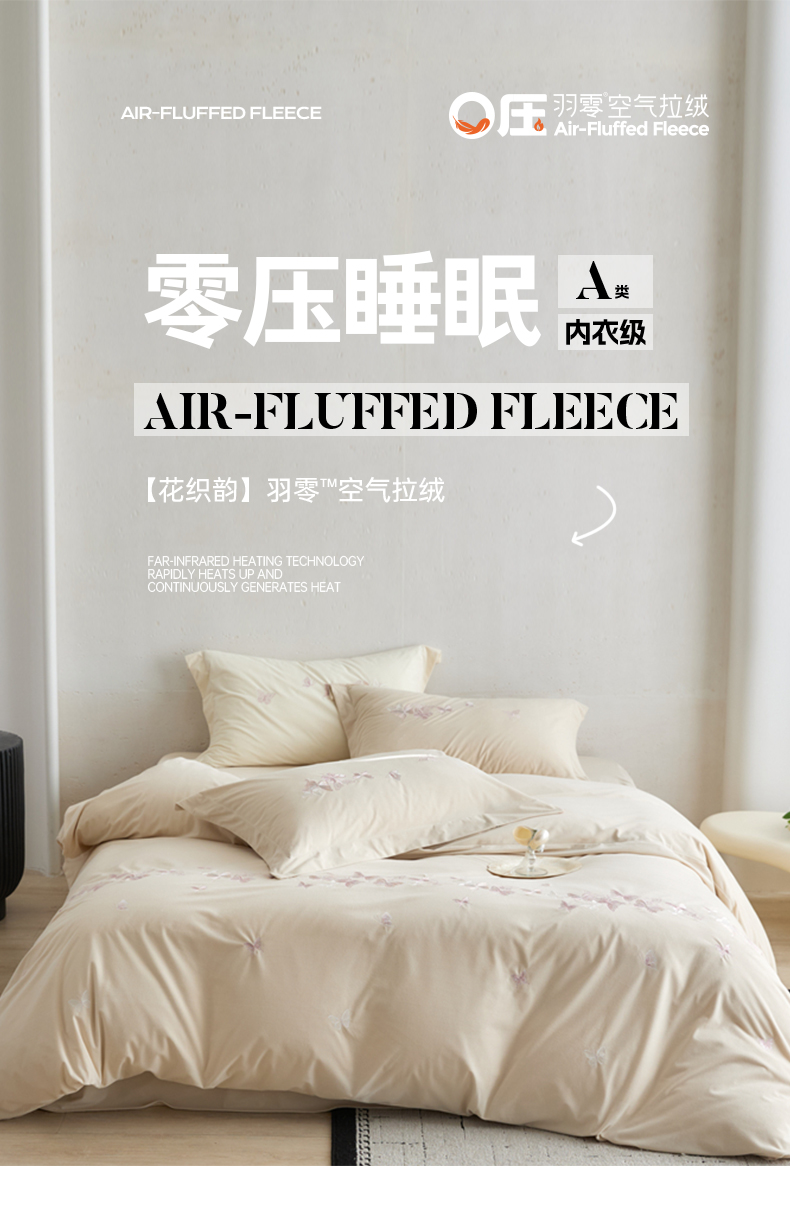 金奇达家纺 2025新款羽零™空气拉绒热肤膜四件套-【花织韵】 会员-35元 热肤膜【花织韵】系列,标准号全网控价(折后券后)不低于228元 宛芙-米杏