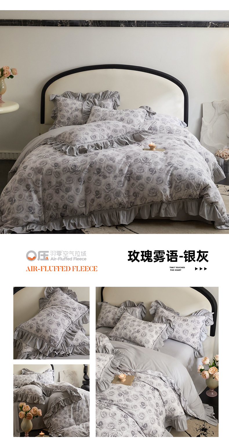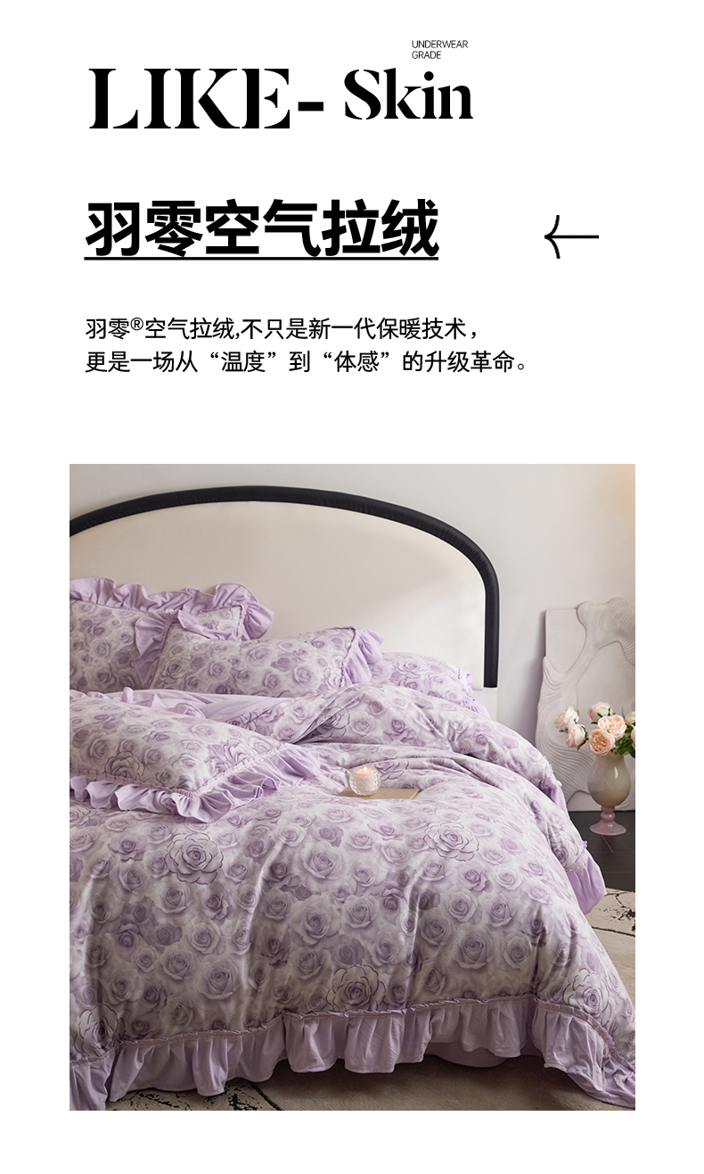 (总)金奇达家纺 2025新款羽零™空气拉绒热肤膜四件套-【玫瑰雾语】