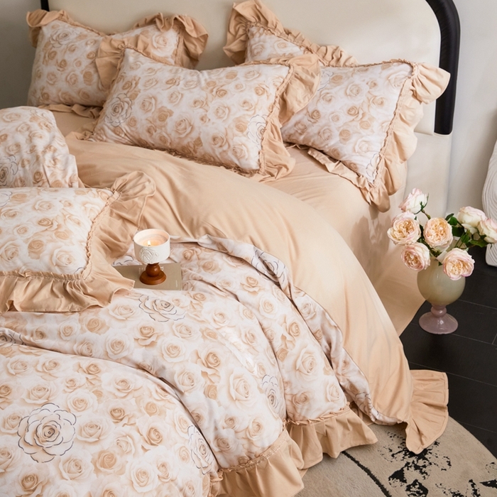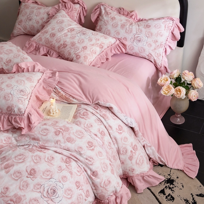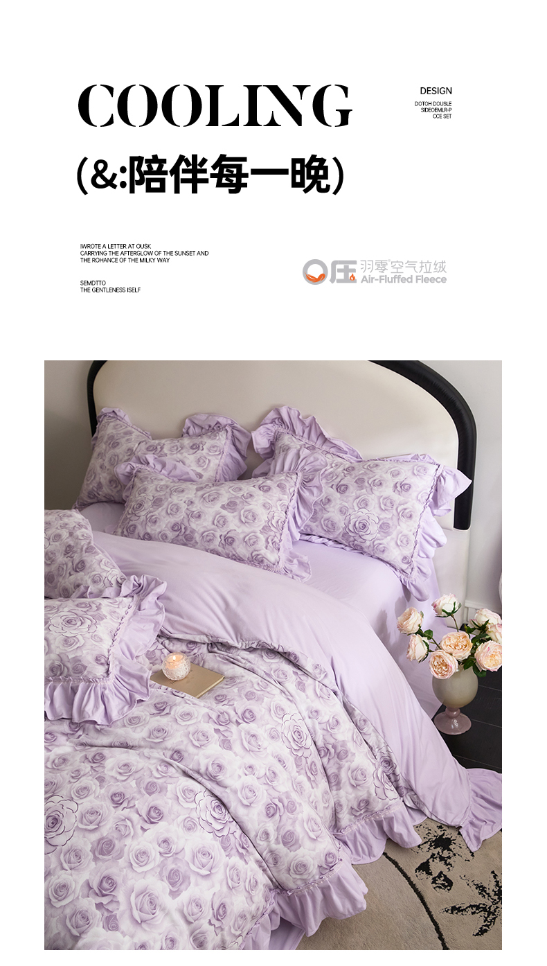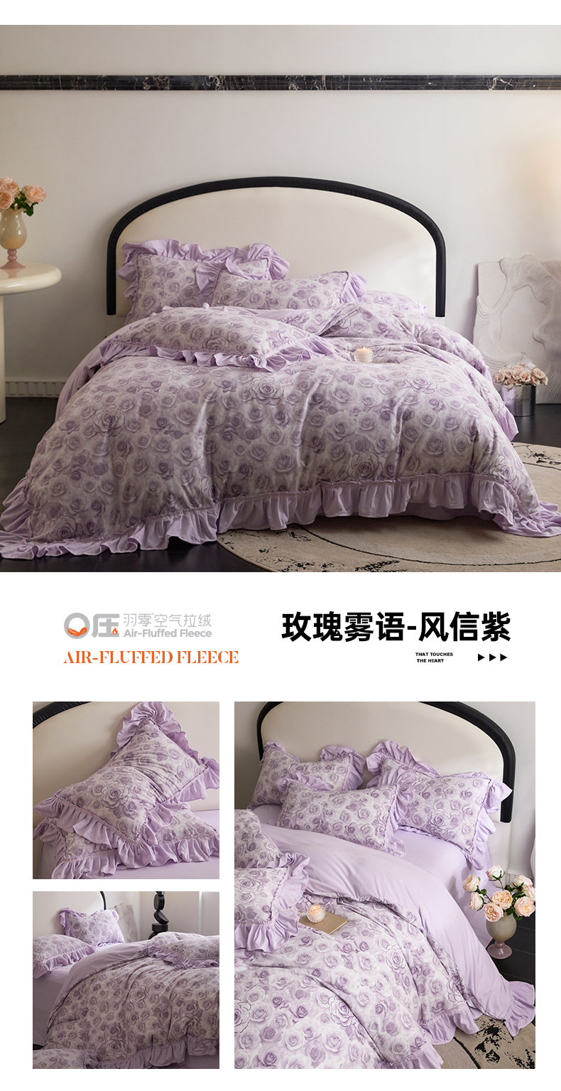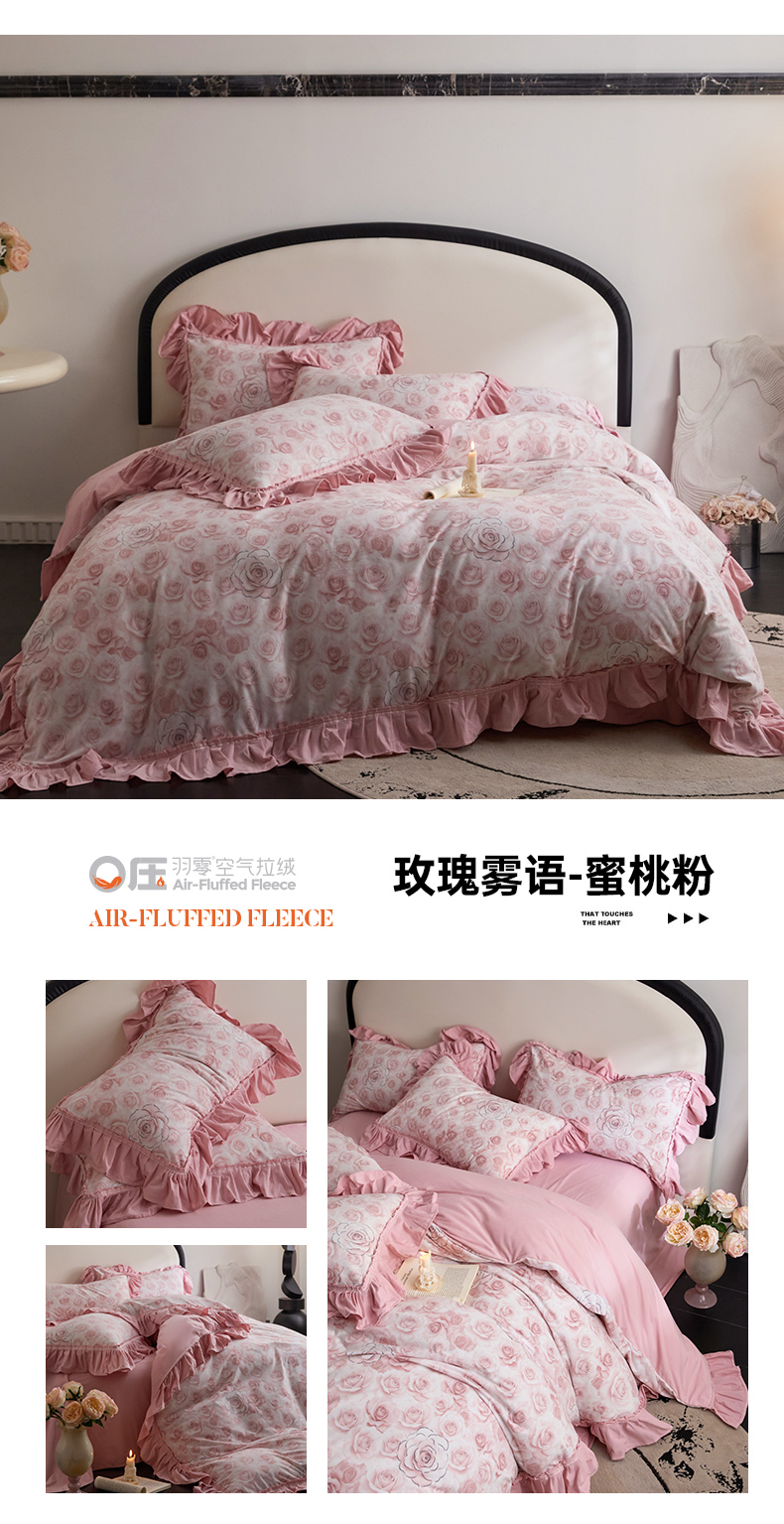> (总)金奇达家纺 2025新款羽零™空气拉绒热肤膜四件套-【玫瑰雾语】