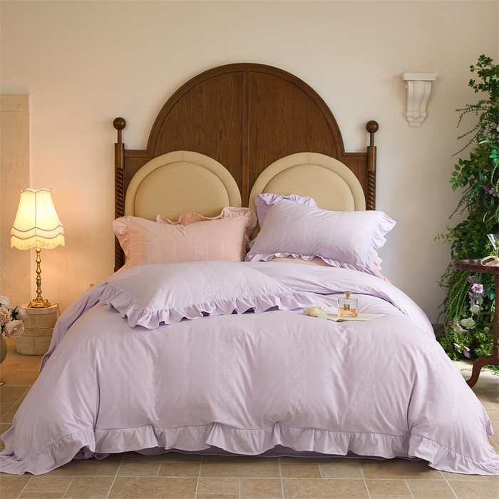 金奇达家纺 2025保暖新款羽零™空气拉绒加厚荷叶边四件套热压纹【香榭丽织梦】 (会员减45元)全网控价标准号(折后券后)不低于199元 香榭丽织梦-浅紫