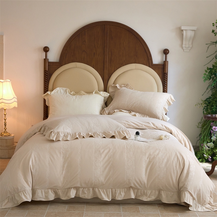 金奇达家纺 2025保暖新款羽零™空气拉绒加厚荷叶边四件套热压纹【香榭丽织梦】 (会员减45元)全网控价标准号(折后券后)不低于199元 香榭丽织梦-杏色