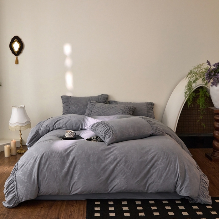 金奇达家纺 2025新款羽零™空气拉绒四件套热压纹四件套-【爱丽莎】 热压纹【爱丽莎】系列,标准号全网控价(折后券后)不低于218元 会员减45元 爱丽莎-银灰