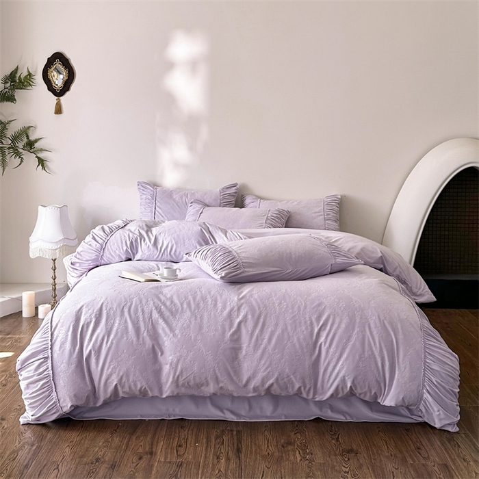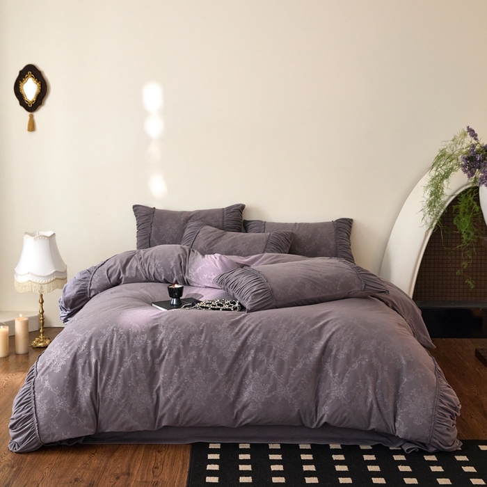 金奇达家纺 2025新款羽零™空气拉绒四件套热压纹四件套-【爱丽莎】 热压纹【爱丽莎】系列,标准号全网控价(折后券后)不低于218元 会员减45元 爱丽莎-浅紫